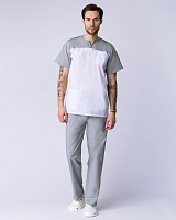 Медицинский костюм мужской «Стоматолог» разработан специально для сотрудников медицинских учреждений, стоматологий или массажных кабинетов. Мужская одежда для врача состоит из двух предметов: рубашка медицинская + брюки мужские. Спецодежда изготовлена в соответствии с ГОСТ, надежно защищает от общих производственных загрязнений. Удлиненная блуза свободного кроя подходит мужчинам разной комплекции и обеспечивает свободу движений. Блузка легко надевается и снимается благодаря удобному V-образному вырезу воротника с центральным разрезом. Для хранения мелочей предусмотрены два кармана: боковой и нагрудный. Рабочие брюки на резинке удобны и долговечны. Прямой силуэт и контрастный цвет брюк замечательно гармонируют с верхом костюма. Благодаря коротким рукавам рубашки и легкому материалу медицинская одежда комфортна в работе даже при высоких температурах.
